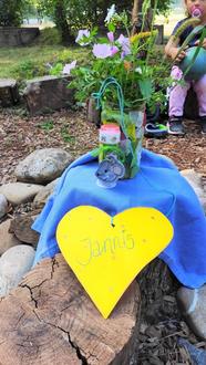 Auch diese Woche begrüßen wir freudig eine neue Familie bei den Waldmäusen. „Jannis“ wir freuen uns sehr, dich und deine Familie nun einen Teil eures Lebensweges begleiten zu dürfen. Im Morgenkreis haben wir uns getroffen, Lieder gesungen und dich begrüßt. Von den Waldmäusen gab es für dich ein gebasteltes Herz mit deinem Namen darauf, Seifenblasen und einen Mäuseanhänger für deinen Rucksack. Das gesamte Waldkindergarten-Team wünscht dir viel Freude im Waldkindergarten. Wir freuen uns sehr, dich und deine Eltern begleiten zu dürfen und wünschen dir viel Freude und Neugierde beim Entdecken der vielen Plätze im Wald.