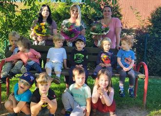 in unseren Kindertagesstätten gab es kürzlich viele Anlässe zum Feiern. So durfte ich in Nieder-Kainsbach unserer Mitarbeiterin aus dem KiTa-Team „Am Feuerstein“, Michaela Göttmann, sehr herzlich zu ihrem 30. Dienstjubiläum gratulieren. Neu im Team ist Nina Müller, die neben einem herzlichen Willkommensgruß auch einen bunten Blumenstrauß entgegennehmen konnte. Ein fröhliches „Herzlich Willkommen“ gab es auch für Annika Flath, die ihr Anerkennungspraktikum kürzlich begonnen hatte.