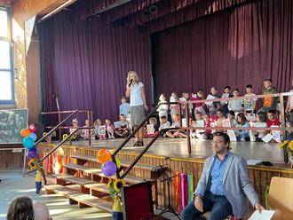 Umrahmt wurde die Feier durch Liedbeiträge von Schülerinnen und Schülern verschiedener Klassen. Im Anschluss daran fand für die Kinder eine allererste Schulstunde mit ihren Klassenlehrerinnen statt.