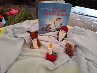Nach einer langen Pause zuhause, freuen wir uns nun wieder auf unseren Alltag im Wald. Den ersten Tag nach den Ferien verbrachten wir ruhig, besinnlich und entspannt am Grundstück. Ein wärmendes Feuer im Tippi machte das gemeinsame Frühstück gemütlich. Erstmals öffneten wir den „Märchen- und Geschichtenkoffer“, den uns die Familien zu Weihnachten schenkten. Heute hörten wir die Geschichte von „Ole und der Waldmaus“. Entsprechende Requisiten fanden sich im Koffer und machten die Geschichte lebendig und greifbar. Wir freuen uns auf weitere spannende Geschichten aus dem Koffer.