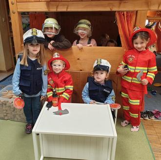 Eine schöne Weihnachtssachspende in Form von Polizei und Feuerwehr Kostümen für die Gummibärchen - Gruppe und einer kleinen Sitzgruppe für die Strolche - Gruppe überreichte uns Kurt Riebel - Mechanische Fertigung GmbH / Brensbach - gleich im neuen Jahr.
