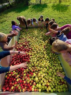 Wenn das Wetter nach den Herbstferien mitspielt und noch genügend Äpfel am Boden liegen, gibt es noch ein besonderes Highlight: Dann wird gemeinsam gekeltert. Darauf freuen sich jetzt schon alle!
