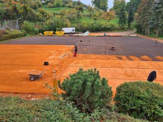 Aufbringen des Spielbelags auf den Plätzen 1 und 2