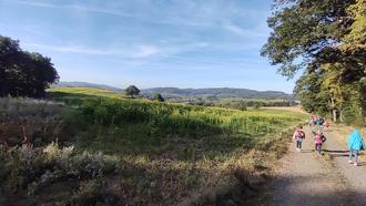 Wieder einmal stand die im schuleigenen Konzept verankerte Schulwanderung unter einem wunderbaren Herbstlicht. Am Brückentag, den 2. Oktober vor dem Tag der deutschen Einheit, konnten die Schüler und Schülerinnen der Rodensteinschule aller Jahrgänge bei bestem Herbstwetter die Natur in guter Luft beim gemeinsamen Wandern erleben. Die Tour ging dieses Mal über den Hexenberg hinaus. Gewandert wurde von der zweiten bis zur fünften Stunde. Die jüngeren Jahrgänge machten eine kleinere Runde und konnten bis zum Ende der fünften Stunde noch die Pausenspielgeräte des Bewegungsangebotes der Schule im Schulhof nutzen. Schulwandern belebt die Lust an Bewegung, fördert das soziale Miteinander und bringt die Natur näher. Die Kinder können ihre Grenzen testen und sind von ihrer Leistung oft selbst überrascht. Schulwanderungen bieten Lernräume, fördern die Gesundheit und das Gemeinschaftsgefühl. Das Gruppenerlebnis schafft einen Kontrast zum gewohnten Lernalltag. Im Konzept der Rodensteinschule ist eine Schulwanderung in jeder Jahreszeit vorgesehen.