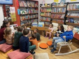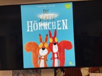 Mit den Geldern der Sparkassen - Stiftung (1500,00€) konnte ein Bildschirm, Sitzkissen und viele neue Kinderbücher angeschafft werden. Der Bildschirm schafft nun die Möglichkeit, dass ein größeres Publikum den Blick auf die Bilder der Bilderbücher werfen kann.