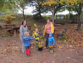 Auch die Naturgruppe „Eichhörnchen“ der Sarolta-Kindertagesstätte Fränkisch-Crumbach schickte uns tolle Fotos und wünschte sich einen Haselstrauch.