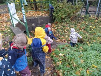 Die letzten Tage im Wald waren nass, windig und regnerisch. Diese Tage nutzen die Kinder zum Matschen und Plantschen in wetterfester Kleidung. Das Wetter fordert die Kinder heraus, doch finden sie einen Umgang damit, wenn es auch einmal ungemütlich ist. Immer wieder zeigt sich die Sonne am Himmel und wir genießen die wärmenden Strahlen. Der Matsch auf Händen, Kleidern und im Gesicht trocknet und lässt sich abreiben. Im Abschlusskreis gibt es für jeden Waldfuchs und jede Waldmaus eine „Regen-Matsch-Medaille“. Und auf die Frage: „wie war der Tag heute für Dich ...“ antworten die Kinder: „Perfekt …“ Doch freuen sie sich auch auf ein warmes Zuhause um für den nächsten Tag wieder voller Freude im Wald zu sein.