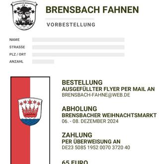 Aufgrund vieler Anfragen nach den Brensbach-Fahnen haben wir uns entschieden, diese ein weiteres Mal anzubieten. Alle Interessierten können bis zum 20. November 2024 Fahnen bestellen.