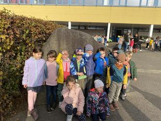 Am Mittwoch, den 30.10.2024 trafen sich die zukünftigen Schulanfänger der Kita „Am Feuerstein“ mit zwei Schulanfängern aus dem Kindergarten „de Laabfrosch“ und zwei Schulanfängern aus dem Kindergarten „Schatzinsel“ zum gemeinsamen Schuleingangsprojekt in der „Rodensteinschule“ in Fränkisch-Crumbach.