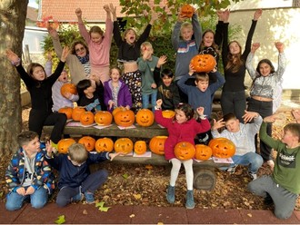 Ebenso konnten wir den Kindern ein beliebtes Highlight zum Halloweentag anbieten: Zusammen mit den Betreuern und Torsten Hormel schnitzten die Kinder Kürbisse, die sie gleich am selben Abend als Leuchten zu Hause verwenden konnten. 30 tolle Kürbisslichter sind entstanden und alle waren mit ihren Kunstwerken sehr zufrieden.