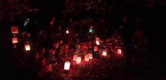 Nach dem großen Applaus, zündeten die Eltern die Laternen ihrer Kinder an und wir zogen in der Dämmerung durch den Wald zum Brünnchen. Musikalisch begleitete uns Mathilda auf ihrer Querflöte. Lieben Dank nochmals dafür.