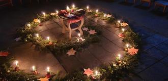 In der Scheune von Familie Georg Horn stimmten wir uns mit den Waldfuchs-Familien auf den Ersten Advent ein. In der Mitte des Raumes legten bereits am Vormittag die Schulfüchse (Vorschulkinder) aus Tannengrün eine Spirale. In der Mitte brannte am Abend eine Kerze an der die Kinder ihr Apfellicht (Apfel mit Baumkerze) entzündeten um es auf der Spirale zu platzieren. Mit der Lichtesfülle erhellte sich der Raum immer mehr und es entstand eine weihnachtliche Atmosphäre. Begleitet wurden die Kinder beim Hinein- und Hinauslaufen der Spirale von Flötenmusik und Gesang.