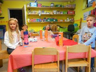 In unserem Keller stehen Werkbänke bereit, Sägen, Hammer, Nägel, Feilen usw. liegen dabei, somit kann jedes Kind sich bedienen. Unser erstes Kunstwerk wird aus einer Pringelsdose gemacht und werden Regenmacher, wenn sie fertig gestellt sind. Die Kinder schlagen Nägel hinein und den „Regen Klang“ erzeugen getrocknete Erbsen oder Reis, die hineingefüllt werden. Die Dose wird mit Filz, Federn, Perlen, Schnüre verziert und geschmückt.