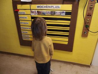 Seit Montag, den 20.11.2023 haben wir unterhalb der Schuli – Treff Pinnwand einen Wochenplan, der bildlich dargestellt wird, für die Kinder frei zugänglich aufgehängt.