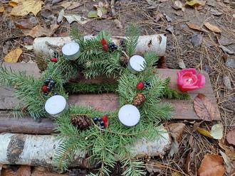 Heute Morgen treffen wir uns am Holunderbusch. Nachdem die Kinder ausgiebig miteinander gespielt haben, machen wir einen kleinen Spaziergang durch den Wald. Dabei sammeln wir Tannenzweige, Tannenzapfen und kleine Äste, die am Boden liegen. Als wir zurück am Grundstück angekommen sind, haben wir aus den gesammelten Naturmaterialien einen kleinen Adventskranz gebunden. Wir freuen uns nun darauf in den kommenden Wochen immer eine Kerze auf dem Adventskranz anzuzünden und im Lichterschein uns auf die besinnliche Weihnachtszeit einzustimmen.