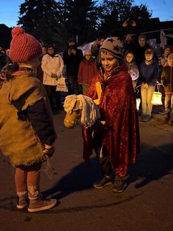 Am Feuerwehrhaus führten wir nochmals unser Martinsspiel vor, dann ging es mit unseren Laternen einmal quer durch den Ort.