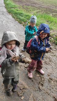 Auch im Kindergartenalltag mögen die Kinder es sehr, die Natur zu erleben und mit ihr zu spielen. Mit ihren Händen arbeiten sie mit der Erde am Waldboden, in Pfützen und erleben sie dadurch.