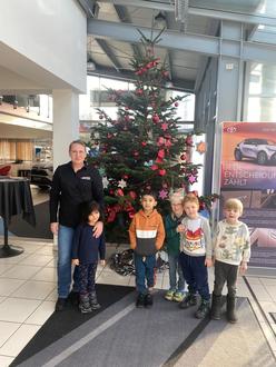 Am Donnerstag, den 27.11.2025 schmückten Kinder der Kindertagesstätte „Am Feuerstein“ in Nieder - Kainsbach den Tannenbaum des Autohauses Ehrhard.