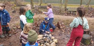 Am Montag feierten wir den Geburtstag von Nadine und den Geburtstag eines Waldfuchses. Da es an diesem Vormittag sehr stürmisch war, legten wir die Feierlichkeiten auf das Grundstück. Dort grillten die Waldfüchse Marshmallows über der Feuerschale. Zuvor schnitzten sie Stöcke und sammelten Feuerholz. Zum Frühstück gab es als Geburtstagsüberraschung Muffins vom Geburtstagskind für alle.