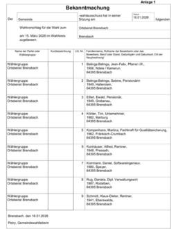 Der Gemeindewahlausschuss hat in seiner öffentlichen Sitzung am 16.01.2026 insgesamt 1 Wahlvorschlag für die Wahl zum Ortsbeirat Brensbach zugelassen: