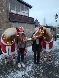 Ein imposanter Zug mit Ponys, Pferd und Hund machte sich von Wersau aus auf den Weg in die Brensbacher Ortsmitte. Schon unterwegs sorgten die weihnachtlich geschmückten Tiere bei Passanten und Autofahrern für große Aufmerksamkeit.