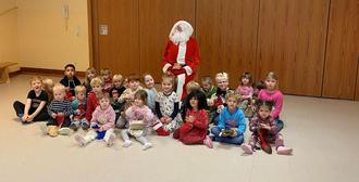 Mit viel Freude nahmen die Kinder ihre eigens hierfür abgegebenen Nikolaussäckchen in Empfang und bedankten sich beim Nikolaus mit einem kleinen Geschenk und einem Lied.