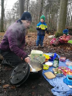 An den kalten Tagen im Wald ist es wunderbar zur Stärkung eine warme Suppe zu genießen. Anlässlich ihres Geburtstages machte Nadine den Waldfüchsen eine Freude und kochte gemeinsam mit ihnen eine leckere Gemüsesuppe. Zur Überraschung bereiteten die Waldfüchse für Nadine ein buntes Buffet ... auch der Fuchs beglückwünschte Nadine ganz herzlich und sang für sie den “Glücksstern im Herzen”...