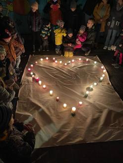 Mit verschiedenen Kerzenstummeln stellten die Kinder gemeinsam ein Symbol (Herz).
