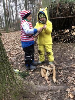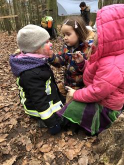 Piraten, Krokodile, Hexen, Feuerwehr, Roboter, Pokemons und kleine Drachen hüpfen fröhlich durch den Wald. Wir singen und tanzen zu lustigen Faschingsliedern und basteln Rasseln aus Naturmaterialien. Mit bunter Faschingsschminke verwandeln sich die Kinder in tanzende Waldelfen und Fantasiefiguren. Mit den Waldwichteln bereiten wir ein leckeres Büffet und kochen eine leckere Pizzasuppe. Geschickt schnippeln schon die Jüngsten Gemüse mit Messer und Schäler. Natürlich gehören auch süße Kreppel zum Faschingsfest.