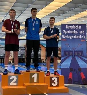 U18 männlich: in der Qualifikation mit 556 noch auf Platz 6, spielte Nico Simon am 2. Tag groß auf. Nico erzielte als Tagesbester im Endlauf 597 Kegel und erreichte in der Summe mit 1153 Kegel einen tollen dritten Platz.