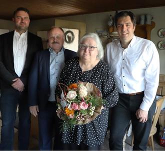 Der Erste Bürgermeister Herr Ludwig Wayand, Dritter Bürgermeister Herr Franz Sedlmeier und Gemeinderatsmitglied Herr Stefan Erl bedankten sich bei Frau Sudler für Ihre langjährige Tätigkeit und übergaben zum Abschied ein kleines Geschenk und einen Blumenstrauß.