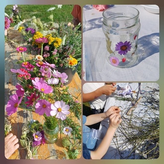 Im Nu verwandelten sich einfache Gläser mithilfe gepresster Blüten zu tollen Windlichtern, an einer weiteren Station wurden kleine Säckchen mit getrocknetem Lavendel befüllt und es entstanden duftende Lavendelsäckchen. Außerdem erfuhren die Kinder, wie man einfach und schnell aus Garten- und Wiesenblumen bunte Sträuße binden kann.