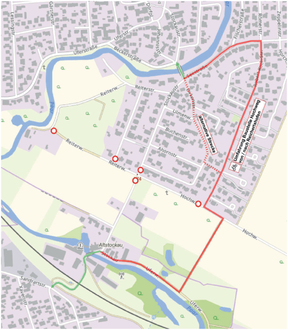 Alternativ kann von der Stockaustraße aus in die Birkenstraße gefahren werden. Über einen kleinen Weg gelangt man dann wieder auf die Robert-Koch-Straße und von dort weiter wie beschrieben.
