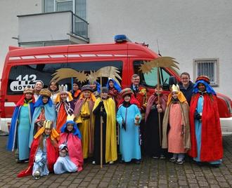 Sternsinger mit Vertretern der Feuerwehr Ebenhausen