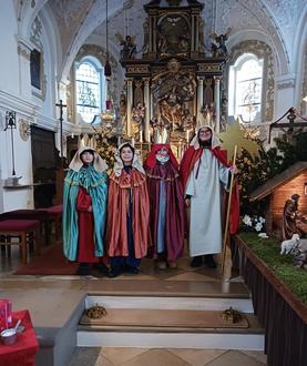 Wieder ein gelungener Anfang für die Weihnachtsfeiertage war am 24.12.25 der Wortgottesdienst mit Krippenspiel. Die traditionelle Weihnachtsgeschichte wurde perfekt von unseren Kommunionkindern wiedergegeben. Dazu passte die besinnlich musikalische Gestaltung von Michael Bauer (Ziach) und Fabio Steiniger (Gitarre).