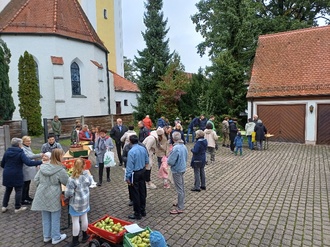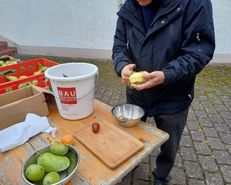 Der Obst- und Gartenbauverein hatte die Bürger dazu aufgerufen, Obst, das nicht verwertet werden kann, am Erntedanksonntag zu verschenken und nicht wegzuwerfen. Etliche Bürger sind diesem Aufruf gefolgt und verschenkten, was sie nicht selbst benötigen. Genutzt wurde auch das Obst der Streuobstwiesen, die die Gemeinde angelegt hat. Das erstaunliche Angebot reichte von Birnen und verschiedenen Apfelsorten, Weintrauben und Walnüssen bis hin zu exotischen Indianerbananen und chinesischen Datteln, die auch gleich probiert werden konnten. Viele Bürger nutzten die Gelegenheit, sich mit ungespritztem Obst aus heimischen Gärten einzudecken und wer später kam, hatte das Nachsehen, denn vieles war schnell vergriffen. Der Obst- und Gartenbauverein überlegt, die Aktion nächstes Jahr zu wiederholen.