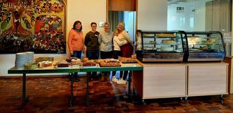 Das erstmalig zum Missionssonntag veranstaltete Kirchencafé der Pfarrei Baar-Ebenhausen war ein voller Erfolg. Brigitte Peters von Tamatogo e. V. berichtete über den Fortschritt des bereits vor ca. 15 Jahren in Lomé/Togo errichteten Waisenhauses und brachte viele Bilder mit, so dass sich die Gäste einen Überblick über den Fortschritt des Projekts verschaffen konnten. Die Trommelgruppe aus dem Verein sorgte für Unterhaltung. Durch den Verkauf von Kuchen und Torten vieler fleißiger Bäckerinnen aus der Pfarrei, denen ich nochmal ganz herzlich Danke sagen möchte, und Eine-Welt-Waren konnte eine Spende in Höhe von 1.320 € an Tamatogo e. V. übergeben werden.