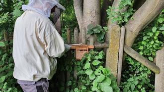 Berater Florian Göttler im Einsatz bei der Umsiedlung eines Hautflügler-Nestes