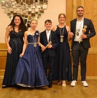 Die Kinder- und Jugendgarde wird in der Saison 25/26 unter dem Motto "Kinder an die Macht" regiert von Prinzessin Sophie II. und Prinz Timo I. Unterstützt werden sie dabei von Funkenmariechen Julia.