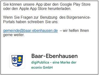 Das Digitale Rathaus ist jetzt auch über unsere Baar-Ebenhausen App erreichbar.