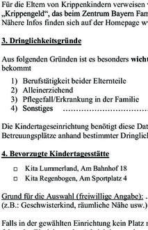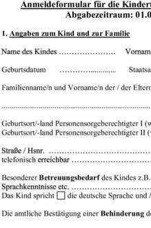 Anmeldeformular für die Kindertagestätten in Baar – Ebenhausen