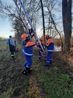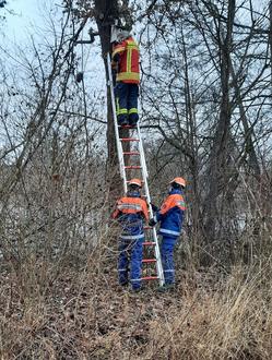 Für einen weiteren Betrag erwarben wir bei der Behinderten-Werkstätte Weißenburg zehn Bausätze von Nistkästen für Brutvögel, die wir in den Freitags-Übungen im Februar zusammengeschraubt und dann in Verbindung mit der Steckleitern-Ausbildung rechtzeitig vor Brutbeginn der Vögel am Ebenhausener Weiher und entlang der Paar aufgehängt haben. Im gleichen Zug wurden die vorhandenen Nistkästen, die wir vor vier und fünf Jahren aufgehängt hatten, wieder gereinigt und instand gesetzt. Zitat Jugendwart Andreas Nonnast: „Ein-Zimmer-Wohnungen besenrein übergeben“. Wir hoffen, dass sich unsere gefiederten Freunde in den „Wohnungen“ wohl fühlen und in den kommenden Wochen ihren Nachwuchs in den Holz-Nistkästen aufziehen werden.