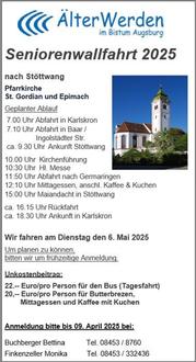 Die Rückfahrt ab Altötting ist für 16 Uhr geplant.
