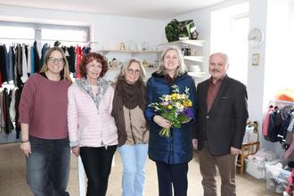 (v.r.) Bürgermeister Ludwig Wayand bedankte sich bei Helga Wachtel für ihr Engagement als Leitung der Kleiderkammer. Auch das Team der Kleiderkammer sagt Danke und freut sich auf viele Besucher an den kommenden Öffnungstagen.