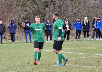 Doppeltorschütze Max Baumeister (rechts) beim Jubel nach seinem 2. Treffer für die Reserve-Mannschaft mit Max Linder aka „Gloi Linder“.