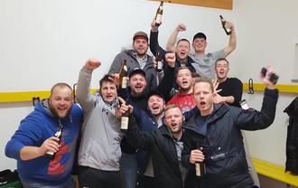 Die Mannschaft sowie einige Unterstützer beim Feiern des Sieges in der Kabine.