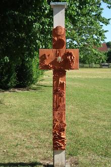Dank ihrer Mithilfe konnte ein kleines Kunstwerk in Kissendorf wieder errichtet werden. Wer es gerne bestaunen möchte, findet dieses Kleinod beim Kissendorfer Kindergarten St. Mauritius. Dort vor dem Eingang befindet sich das restaurierte Kreuz; und steht man ca. drei Meter davor, dreht seinen Kopf um 90 ° nach links … dann entdeckt man vielleicht ein weiteres Kreuz aus Ton.