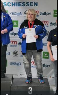 Tanja Keck vom Schützenvereins Edelweiß Bühl beendete am 05.10.2025 ihre erfolgreiche Saison mit dem 3. Platz bei den Deutschen Meisterschaften des DSB in Hannover Sie erzielte den Sprung auf s Treppchen mit 308,4 Ringen in der Disziplin 50m Auflage mit den KK-Gewehr. Vorausgegangen war die Qualifikation bei den Bayrischen Meisterschaften in München wo Sie mit 305,1 Ringen ebenfalls den 3. Platz erreichte.