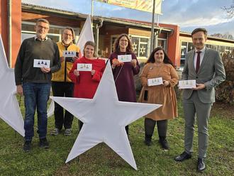 Die Vorweihnachtszeit hat begonnen und auch in diesem Jahr wird eine besondere Tradition fortgesetzt: Seit seinem Amtsantritt 2013 setzt Landrat Florian Töpper auf individuell gestaltete Grußkarten an Weihnachten. Während er im vergangenen Jahr kreative Unterstützung durch die Schülerinnen und Schüler der Heide-Schule in Schwebheim erhielt, gestalteten in diesem Jahr Mitarbeiterinnen und Mitarbeiter der Lebenshilfe-Werkstatt in Sennfeld die Grußkarten. Mehr als 400 Karten sind in den letzten Wochen entstanden – jede für sich ein Unikat. Bei einem Besuch vor Ort bedankte sich Landrat Florian Töpper persönlich bei allen Beteiligten, bei stellv. Werkstattleiter Andreas Roth sowie dem gesamten Team. „Hier vor Ort in der Werkstatt der Lebenshilfe Schweinfurt zeigt sich das ganze Jahr über, was es bedeutet, füreinander da zu sein, für Menschen mit und ohne Behinderung. Herzlichen Dank für diese so wertvolle Arbeit“, sagte Landrat Florian Töpper. Die Werkstatt Sennfeld, eine Einrichtung der Lebenshilfe Schweinfurt, begleitet Menschen mit Behinderungen seit 1969 bei ihrer Teilhabe am Arbeitsleben und beschäftigt circa 500 Menschen mit und ohne Behinderungen. In der Manufaktur ist unter anderem eine Schreinerei sowie Schlosserei verortet und es werden Druck- und Laserarbeiten angeboten. Die Mitarbeiterinnen und Mitarbeiter fertigen hochwertige Produkte, die teils weltweit exportiert werden. Der „Sennshop“ ist der Werkstattladen und Onlineshop für umweltbewusst, nachhaltig und sozial hergestellte Produkte aus der Werkstatt Sennfeld.