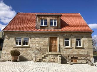 Eine der drei Stationen der Busexkursion. Familie Merthen und Rudolph aus Ebertshausen gewann 2023 für die gelungene Umnutzung und Kernsanierung eines alten landwirtschaftlichen Gebäudes zum Wohnhaus den Landkreis-Preis „Punctum“.